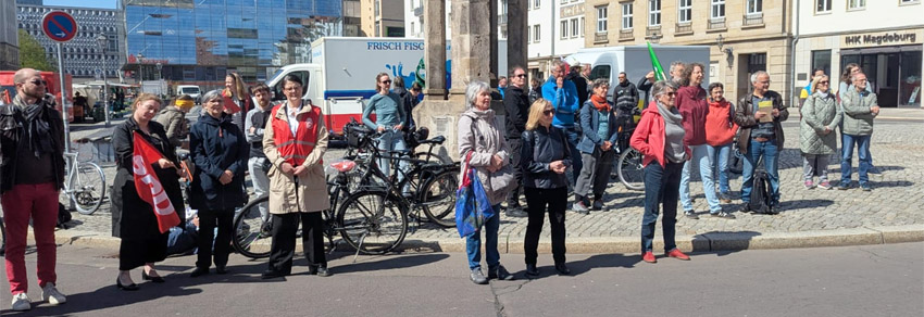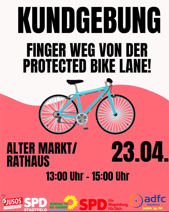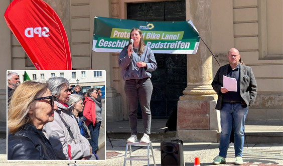Teilnahme der Sprecherinnen an der Kundgebung gegen die Streichung der Protected Bike Lane in der Diesdorfer Straße am 23.04.2026 auf dem Alten Markt