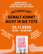 25. November 2025 – Am diesjährigen „Orange Day“, dem Internationalen Tag gegen Gewalt an Frauen, ist es wieder soweit: Die Aktion „Gewalt kommt nicht in die Tüte“ lädt die Menschen in Magdeburg und Umgebung ein, sich aktiv gegen Gewalt an Frauen stark zu machen. In 66 Bäckereien werden 60.000 eigens dafür bedruckte Brötchentüten verteilt, die auf Hilfsangebote für betroffene Mädchen und Frauen aufmerksam machen ...